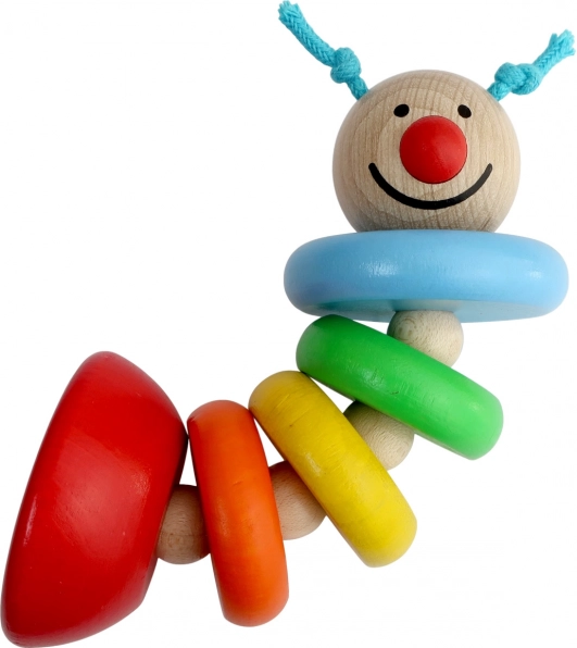 Această omidă colorată din lemn este jucăria ideală pentru cei mai mici. Datorită segmentelor unite prin elastic, se îndoaie, se răsucește și revine ușor la formă, motivând copiii la explorare activă și antrenând coordonarea mână–ochi. Dimensiunea compactă se potrivește perfect în mâna copilului.