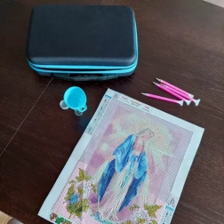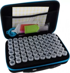 Acest set practic ușurează fiecărui iubitor al picturii cu diamante organizarea și însăși creația. Totul este depozitat în siguranță într-o husă rigidă și durabilă cu fermoar, inclusiv borcănașele așezate ordonat în inserția din spumă și buzunarul din plasă pentru accesorii. Datorită acestei soluții, aveți toate pietricelele și uneltele mereu la îndemână și perfect sortate.