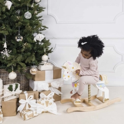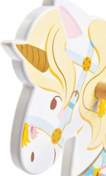 Acest unicorn balansoar din lemn, în stil carusel, îi va încânta pe toți cei mici. Oferă mișcare lină de legănare, dezvoltarea echilibrului și a motricității și o execuție sigură cu bază stabilă, mânere pentru mâini și suporturi pentru picioare. Fabricat din lemn sustenabil și vopsit cu culori pe bază de apă, netoxice.