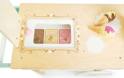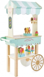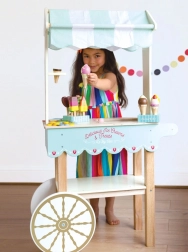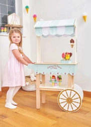 Căruciorul oferă uși glisante către compartimentul pentru „gheață” cu ilustrații ale aromelor, două cornete magnetice și roți mobile, astfel încât copiii să poată juca rolul vânzătorului de înghețată oriunde. Susține abilitățile sociale și verbale, dezvoltă imaginația și motricitatea fină prin joc de rol. Jucăria a obținut distincții prestigioase pentru design, calitate și valoare ludică.