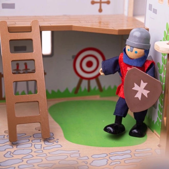 Setul include 4 figurine din lemn – doi cavaleri albaștri și doi roșii, cu scuturi și căști. Ideal pentru a construi propriile povești și bătălii.
