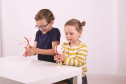 Oferă-le copiilor o introducere jucăușă în lumea sunetelor cu toboșa rotativă din lemn cu motiv de steluțe. Datorită manipulării ușoare, sprijină dezvoltarea motricității fine, a ritmului și a creativității. Este suficient să rotești toba între palme, iar mărgelele vor crea un efect ritmic plăcut și curat.