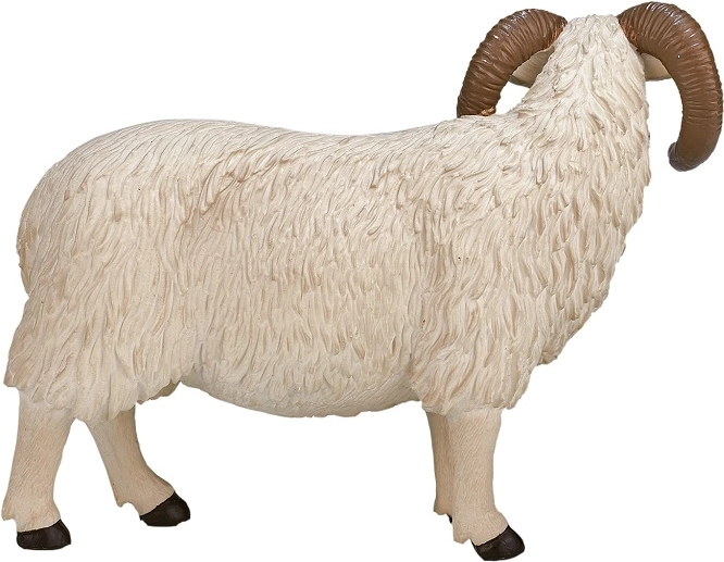 Corp modelat cu grijă, textură realistă a „lânii” și coarne răsucite caracteristice pentru un aspect autentic la prima vedere.