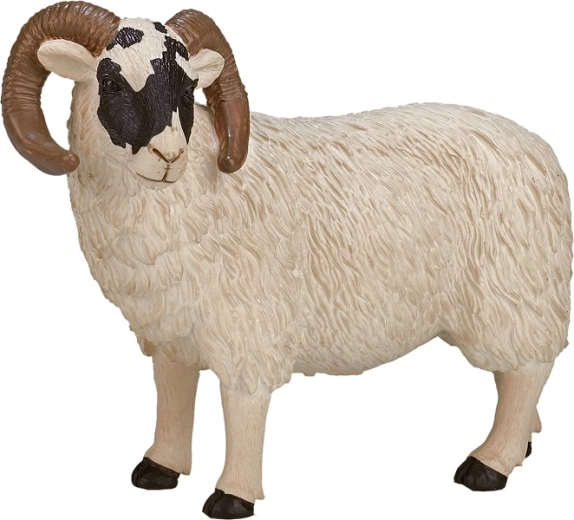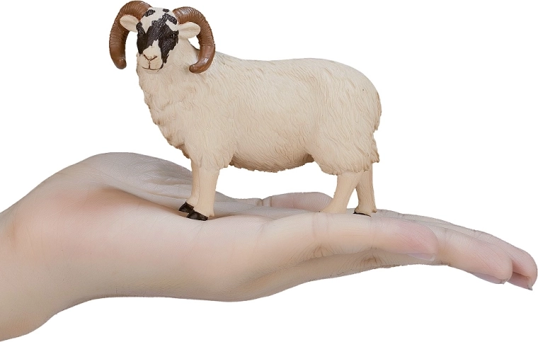 Această figurină detaliată a berbecului Hampshire surprinde fidel trăsăturile caracteristice ale rasei – conformația robustă, coarnele răsucite pronunțate și structura realistă a „lânii”. Datorită execuției atente, este excelentă pentru joacă, educație și expoziții tematice.