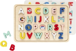Acest set ingenios și jucăuș îmbină învățarea cu distracția. Fiecare literă, la ridicare, dezvăluie o ilustrație tematică corespunzătoare literei – astfel copiii fixează literele și, în același timp, descoperă cuvinte în engleză, franceză, italiană și germană. Piesele au margini plăcut rotunjite pentru o prindere sigură de către mânuțele mici.