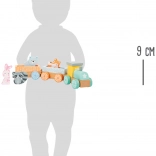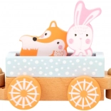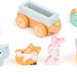 Trenulețul din lemn este o distracție grozavă pentru copiii de la 18 luni. Acest set minunat conține vagoane colorate, ușor de conectat, și patru figurine drăgălașe - vulpe, iepure, raton și urs. Locomotiva și vagoanele sunt fabricate din lemn de calitate și proiectate astfel încât să fie sigure pentru cei mai mici copii. Datorită culorilor pastelate și construcției simple, acest set este ideal pentru dezvoltarea imaginației și a abilităților motorii ale copilului dvs.