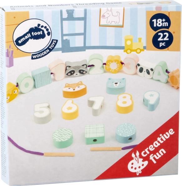 Acest set din lemn de înaltă calitate de la SMALL FOOT aduce copiilor bucuria descoperirii numerelor și formelor. Culorile pastel și formele plăcute invită la joacă, în timp ce șnurul practic cu capăt din lemn îi ajută pe cei mici să înșire ușor piesele. Setul este ideal pentru primele lecții despre numerele 0–9 și pentru dezvoltarea răbdării, concentrării și gândirii logice.