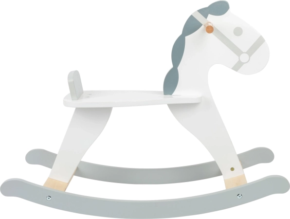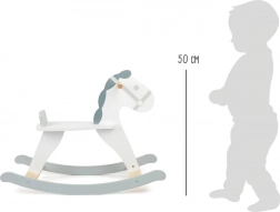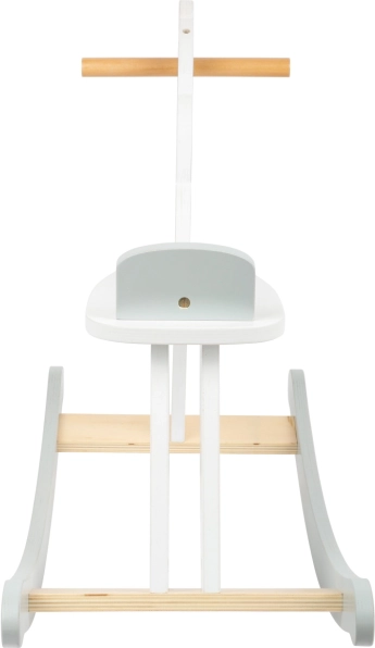 Căluț balansoar clasic în stil scandinav modern, combină alb și gri, are un scaun confortabil cu spătar și o construcție solidă din lemn. Ideal pentru copii de la 2 ani, susține dezvoltarea echilibrului, coordonării și aduce distracție de lungă durată în orice cameră de copii.