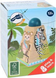 Acest turn de înșiruit de calitate, cu motiv Jungle, oferă cinci piese colorate și un țăruș central sigur, datorită căruia copiii pot asambla cu ușurință și pot descoperi formele și culorile. Ilustrațiile cu animăluțe atrag din prima clipă și susțin concentrarea și învățarea prin joacă.