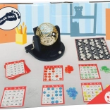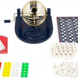 Acest set complet de Bingo oferă tot ce ai nevoie pentru joc imediat: tambur metalic de extragere cu manivelă, bile numerotate, cartonașe și jetoane colorate. Jucătorii marchează treptat numerele extrase pe cartonașele lor, iar cine formează primul un șir de cinci orizontal, vertical sau diagonal strigă „BINGO!”.