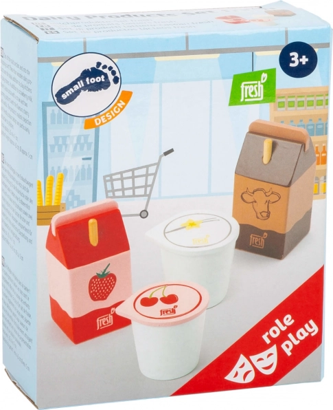 Extindeți bucătăria de joacă sau standul de vânzare al copilului cu setul frumos lucrat de produse lactate din lemn SMALL FOOT. Designul realist și dimensiunile plăcute se potrivesc perfect în mâinile copiilor și invită la joacă creativă. Lemnul solid asigură rezistență și o durată lungă de viață chiar și la utilizare zilnică.