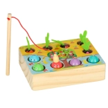Joc Montessori din lemn, distractiv, cu care copiii se bucură de „pescuit” și grădinărit acasă. Cu ajutorul undiței magnetice prind peștișori și râme, iar morcovii îi scot trăgând de frunzele din fetru. Dezvoltă motricitatea fină, coordonarea ochi–mână, răbdarea și precizia, învățarea culorilor și percepția tactilă. Fabricat din lemn de calitate cu vopsea sigură și netoxică.