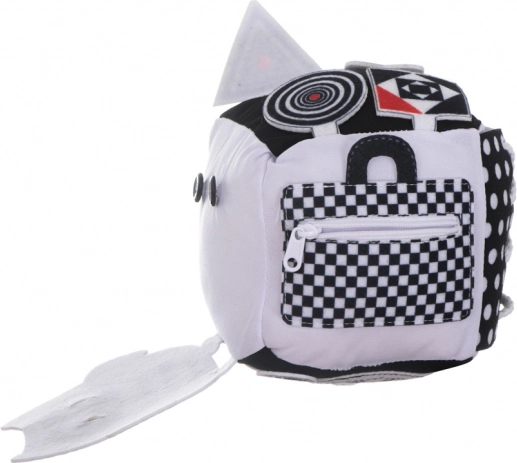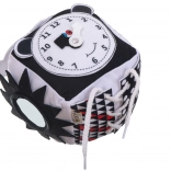 Acest cub senzorial moale va face fiecare zi a micului dumneavoastră explorator minunată. Modelele contrastante și culorile alb-negru stimulează vederea, în timp ce diversele texturi ajută la dezvoltarea simțului tactil. Cubul este echipat cu o zornăitoare și elemente crepitante, care captează auzul și celor mai mici.