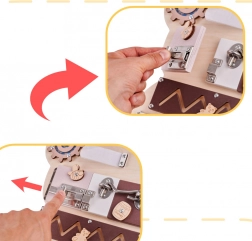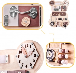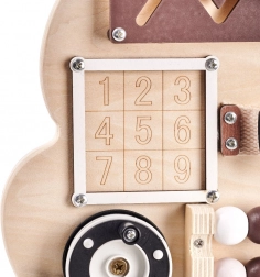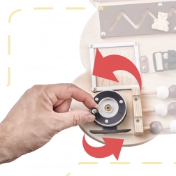 Tablă senzorială de manipulare în formă de ursuleț, concepută pentru a oferi copiilor ore întregi de distracție și dezvoltare. Această jucărie simplă este inspirată de pedagogia Maria Montessori și stimulează creativitatea și imaginația celor mici.