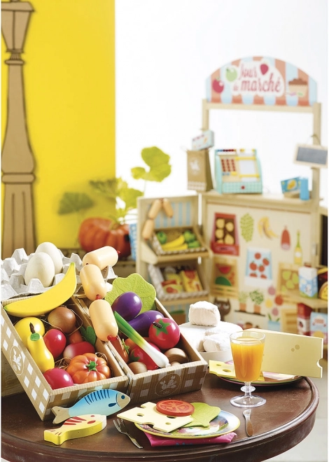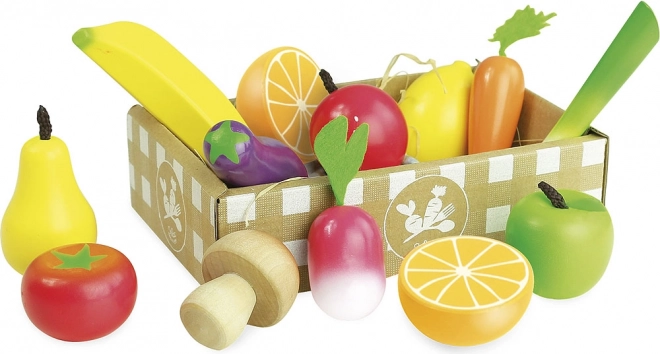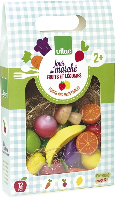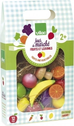 Acest set de calitate de la VILAC oferă copiilor o selecție variată de fructe și legume îndrăgite. Execuția din lemn cu accesorii din fetru este durabilă, sigură și plăcută la atingere. Setul este excelent pentru jocurile în bucătăria pentru copii sau la piață, susține comunicarea, creativitatea și învățarea despre alimentația sănătoasă.