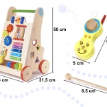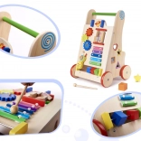 Acest mers din lemn este o alegere perfectă pentru copiii care încep să învețe să meargă. Funcționează nu doar ca ajutor la primii pași, ci poate servi și ca cărucior pentru jucăriile preferate sau ca primul abac. Mersul susține menținerea echilibrului și dezvoltarea abilităților manuale, contribuind astfel la motricitatea generală a copilului.