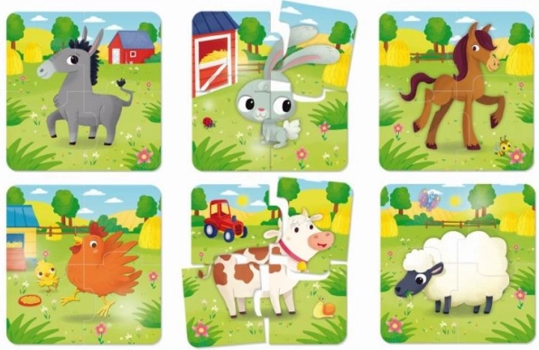 - 6 imagini din mediul fermei alcătuite din 24 de piese mari – ideale pentru primele încercări de asamblare.