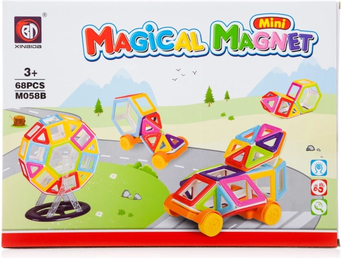 Set blocuri magnetice Magical Magnet Mini 68 piese - creează și construiește oricare dintre modelele tale preferate! Acest set diversificat va face construirea parcurilor de joacă sau orășelelor de distracții o activitate interesantă și captivantă pentru cei mici.