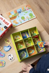 Cutia Montessori Animale aduce copiilor lumea variată a naturii printr-o formă simplă de triere și asociere. Cei mici învață să distingă animalele și mediul lor natural, dezvoltă gândirea logică și coordonarea mână–ochi. Datorită designului colorat și intuitiv, jocul este ușor de însușit chiar și de către cei mai mici.