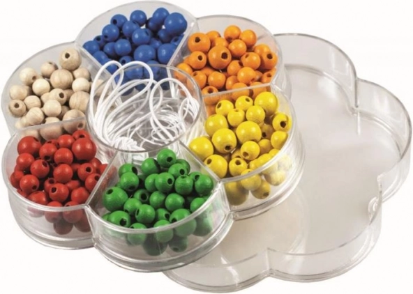 Conținutul pachetului oferă suficiente piese pentru confecționarea de brățări, coliere sau mici decorațiuni. Materialul din lemn natural în combinație cu elemente din plastic de calitate asigură rezistență și durabilitate.