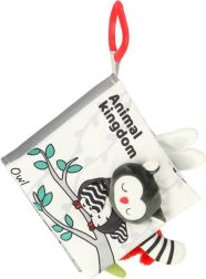 Cu această carte moale în culori contrastante, micuțul tău pornește să descopere lumea animalelor – de la bufniță la maimuță și panda până la raton, elefant, crocodil sau zebră. Elementele alb-negru și roșii susțin stimularea vizuală timpurie, în timp ce texturile variate și elementele interactive dezvoltă motricitatea fină și coordonarea mână–ochi. Fiecare pagină conține denumirile animalelor în limba engleză, ceea ce susține în mod natural primele achiziții de vocabular.