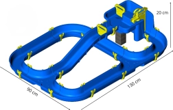 Etanșare fără lipire, plastic solid și trei configurații posibile ale pistei. Construiți, reconstruiți și jucați-vă oriunde în aer liber.