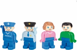 Sunt incluse 41 de piese, printre care 4 figurine și accesorii: bărcuțe, barcă de poliție, hidroavion și plută. Ideal pentru joacă împreună și inventarea de povești.