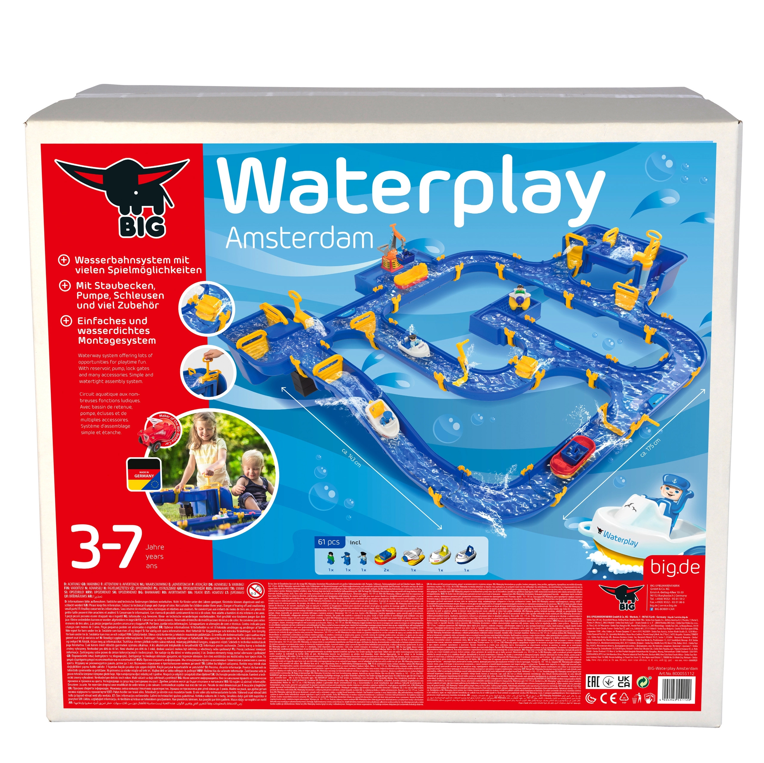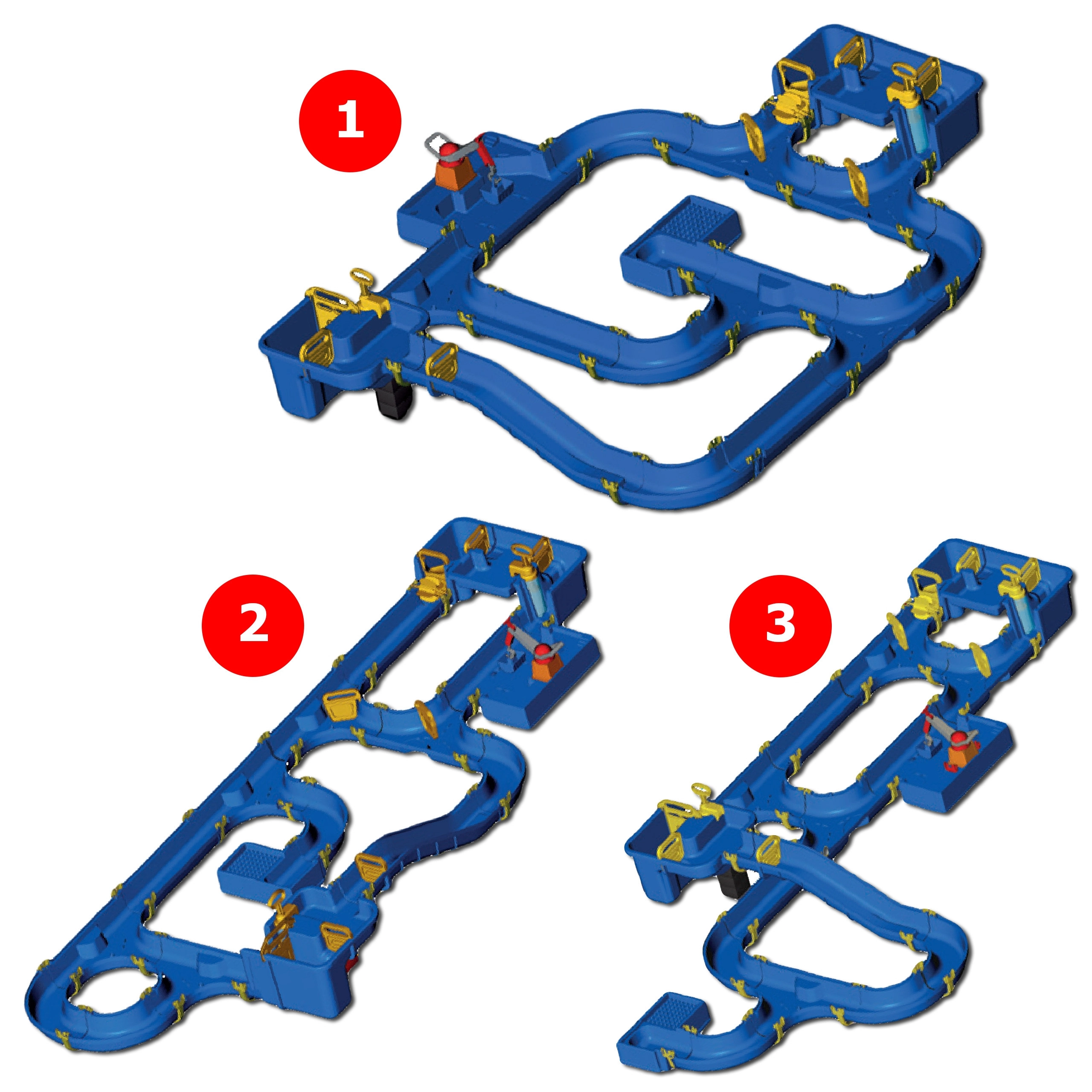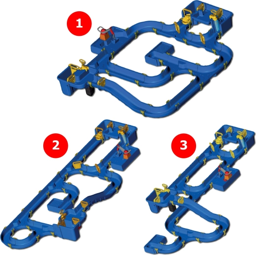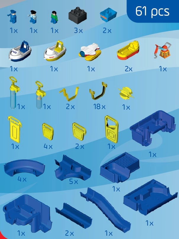 Setul include o ecluză conectată la un canal abrupt, două pompe manuale, o roată hidraulică, patru tipuri de bărci și trei figurine. Datorită garniturilor speciale, setul se asamblează ușor fără lipici, poate fi extins liber și se strânge rapid. Întregul traseu atinge o lungime de până la 175 cm, oferind mult spațiu pentru joacă împreună, afară sau în interior.