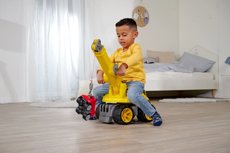 Macaraua maxi BIG Power Worker este un vehicul de împins stabil, din plastic de calitate, robust, proiectat pentru durabilitate și distracție în siguranță. Turnul macaralei se rotește la 360°, iar brațul mobil se manevrează ușor, astfel încât copiii pot ridica și muta obiecte cu ajutorul troliului cu cablu performant, cu forță de tracțiune de până la 450 g.