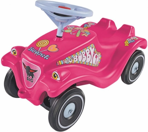 Îndrăgitul vehicul de împins BIG Bobby Car Classic, în versiune roz cu autocolante drăguțe cu dulciuri, este o alegere excelentă pentru primele experiențe de condus. Datorită scaunului ergonomic și construcției stabile, susține postura corectă și dezvoltarea motricității.