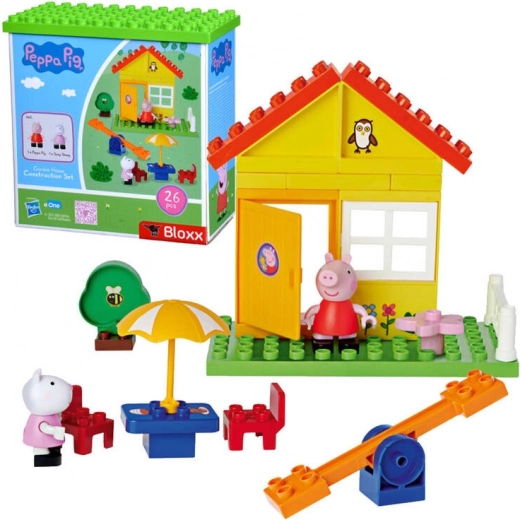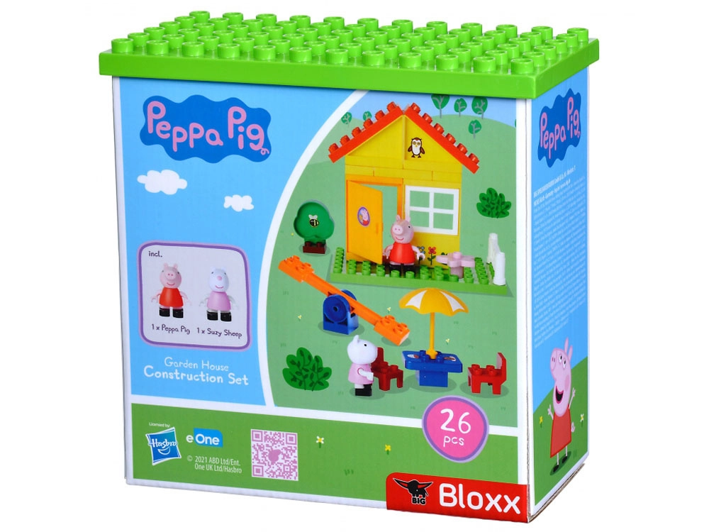 Set de construcție vesel inspirat de povestea PEPPA PIG, aduce 26 de piese colorate din care copiii pot construi o căsuță cu grădină și loc de joacă. Include figurinele Peppa și Suzy pentru jocuri de rol. Se asamblează și se demontează ușor, piesele sunt ideale pentru mâini mici și dezvoltă creativitatea, motricitatea fină și imaginația.
