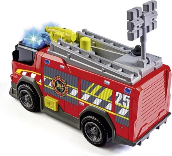 Oferiți-le copiilor misiuni de salvare pline de acțiune cu mașina de pompieri compactă de 15 cm cu rulare liberă. Oferă efecte luminoase și sonore, pompă manuală de apă și scară mobilă pentru un joc și mai realist. Ideală pentru micii pompieri de la 3 ani.
