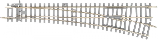Macaz cu reproducere detaliată a traverselor din beton ale liniilor moderne, în culori fidele. Combină linia dreaptă G239 și curba de 15° R9 către dreapta. Poate fi acționat manual. Este disponibil și un motor de acționare la distanță, pentru care este pregătită conexiunea aici. Principalele caracteristici: simplu, direcție spre dreapta lungime 239 mm rază de 15° (R9) 908 mm reproducere a traverselor din beton Documentație: Broșură pentru șinele PIKO H0 A-Gleis (DE, EN)