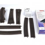 Acest set de șine conține detalii autentice, cum ar fi traversele de lemn pe bază de pietriș în culori realiste. Setul include arc paralel, secțiune dreaptă și două macaze simple, care pot fi controlate manual. Pentru macazele telecomandate, se poate completa cu bază adecvată.