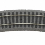 Șină curbată Piko cu reproducere realistă a traversei de lemn pe substrat de pietriș oferă culori fidele și detalii precise, ideală pentru machete feroviare.