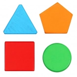 - cub educațional, forme pentru sortator, set de pioni pentru joc + 2 zaruri