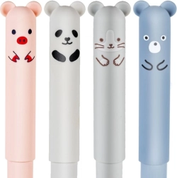 Setul conține 4 pixuri ștergibile, stilate, în culorile gri, alb, roz și albastru, cu motive jucăușe de animăluțe (purceluș, panda, șoricel, ursuleț). Datorită cernelei termoreactive corectați ușor micile greșeli – folosiți radiera de la capătul pixului și scrieți din nou, fără tăieturi inestetice.