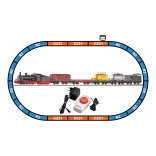 - Conținut complet – locomotivă, 5 vagoane de marfă, șine, alimentare și controler.
