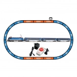 Include o locomotivă, trei vagoane, un oval complet de șine și un controler analogic – după asamblare poți rula imediat. Suprafața minimă recomandată pentru construcție este 168 × 98 cm.