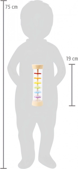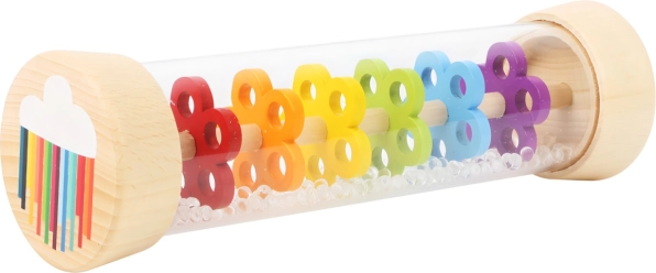 Prin înclinarea jucăriei se creează un foșnet natural, delicat, asemenea ploii, care ajută copilul să se calmeze și să se concentreze.