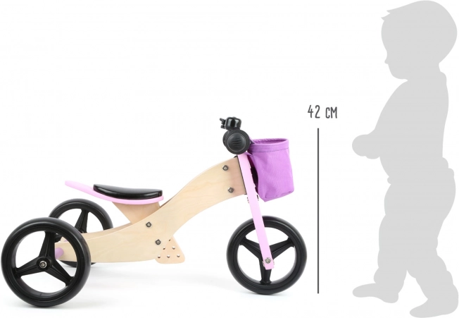 Împingătorul din lemn 2 în 1 roz small foot îi însoțește pe micii rideri de la primele încercări până la mersul sigur. Începe ca tricicletă pentru stabilitate maximă și antrenarea echilibrului, apoi, printr-o transformare simplă, continuă ca împingător de echilibru. Construcția ușoară și robustă asigură manevrare facilă și durată de viață îndelungată.