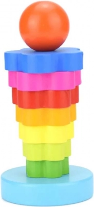 Oferiți copiilor o distracție de durată cu o jucărie clasică din lemn. Puzzle-ul cu inele este un joc clasic pentru copii mici. Ajută la dezvoltarea corectă a motricității fine, a logicii și a răbdării. Puzzle-ul poate fi, de asemenea, utilizat pentru a învăța culorile sau formele. Jocul constă în a construi un turn din inele, de la cel mai mare până la cel mai mic.0