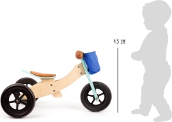 Bicicletă din lemn elegantă și sigură pentru copii, care crește odată cu ei. Oferă opțiunea de reconversie de la tricicletă la versiune pe două roți, sprijină dezvoltarea abilităților motorii și coordonării.