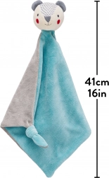 Păturică extra moale, pufoasă, cu cap de ursuleț zâmbitor. Un accesoriu perfect pentru relaxarea de după-amiază. Modelele și culorile contrastante ale ursulețului stimulează dezvoltarea senzorială la copii, în timp ce nodul de la colțul păturicii poate fi ținut sau mușcat.