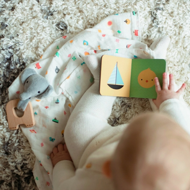 Acest set bine gândit combină materiale naturale, design adorabil și practicitate pentru fiecare zi alături de bebeluș. Jucăria de ros calmează gingiile în timpul erupției dentare, șalul moale din bumbac este util pentru eructație, ștergere sau acoperire, iar primul leporello sprijină stimularea vizuală și tactilă.