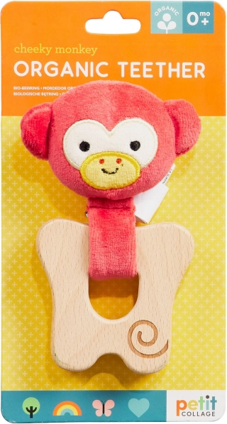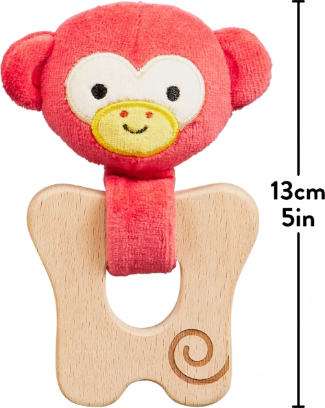 Jucăria de dentiție cu cap de maimuțică veselă oferă bebelușului atât confort, cât și distracție. Partea textilă din bumbac organic este plăcută la atingere, iar inelul din lemn de fag certificat FSC este neted și durabil. Forma ergonomică sprijină dezvoltarea motricității fine și o prindere sigură.
