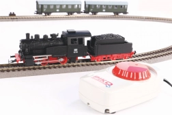 - Pachet complet – locomotivă BR 98 cu tender, 2 × vagon de călători, șine, alimentare și controler.