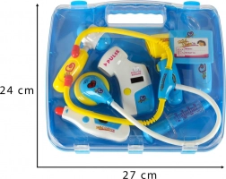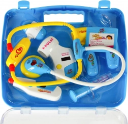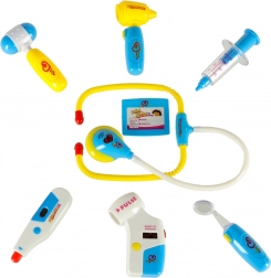 Setul include instrumente medicale precum stetoscop, termometru, tensiometru, instrument pentru urechi, seringă, ciocănel, insignă medicală și un instrument pentru verificarea gâtului cu iluminare.