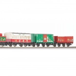 Acest set special de Crăciun aduce o garnitură asortată cromatic cu locomotivă cu abur 0-4-0 și tender, completată de un vagon de călători și două vagoane de marfă. Șinele cu terasament integrat asigură rezistență sporită, stabilitate și asamblare repetată comodă. Sunt incluse un oval de bază, alimentarea și controlerul analogic – doar asamblezi și poți porni.