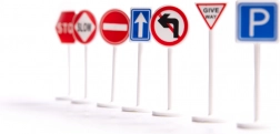 1 x avion, 3 x mașinuță, 1 x set de indicatoare rutiere